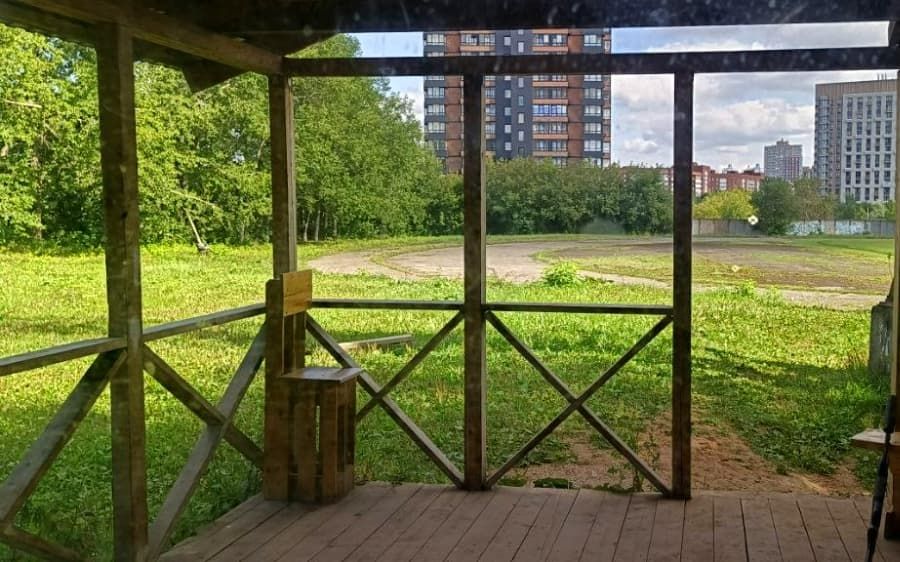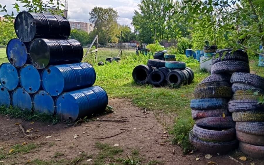 Переодеться в экипировку для игры вы можете в беседке, которая находится рядом с игровым полигоном и отапливается в холодное время.