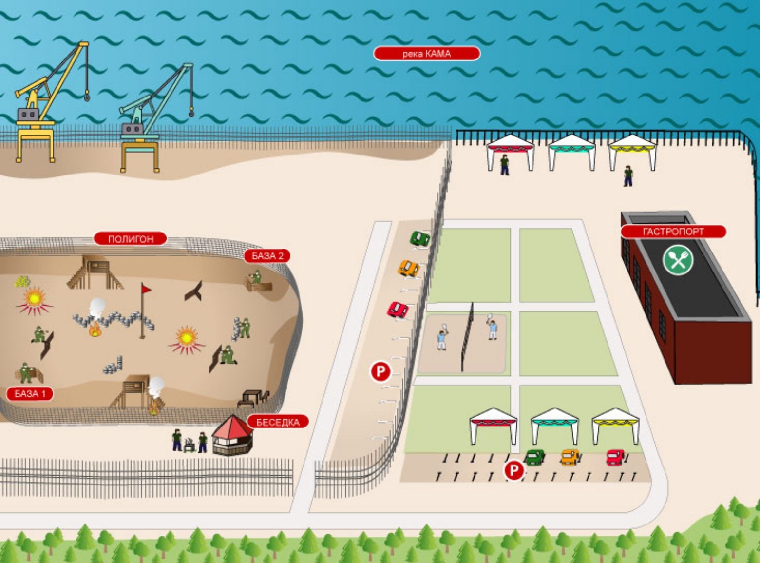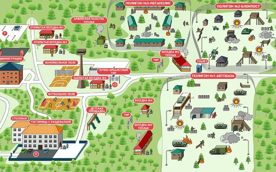 Беседка находиться в зоне отдыха в 5–7 метрах от полигона. Вместимость беседки 15–20 человек. Зимой и в холодное время года беседки будет отапливаются дровами. В беседке есть стол, лавки, свет, электричество, розетки. Рядом стоит мангал. Чайник и решетку для жарки мяса возьмите бесплатно у инструктора в раздевалке. Музыкальной аппаратуры, посуды, воды в беседке нет. Возьмите с собой.
